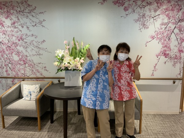 スタッフはアロハシャツを着て