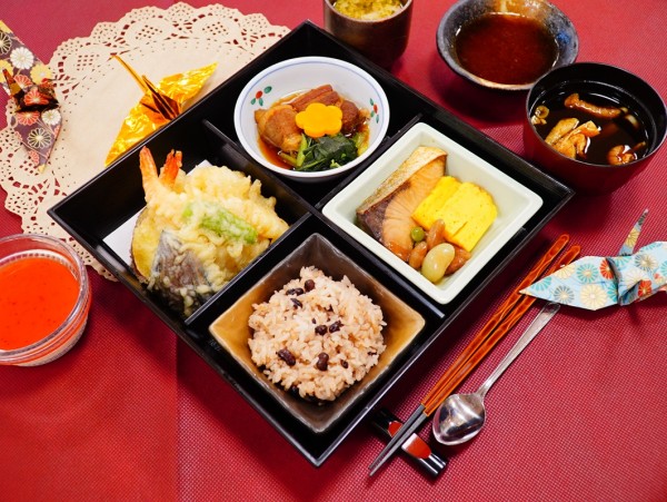 昼食には、皆様に人気の天ぷらを中心とした特製のお弁当をご用意しました。