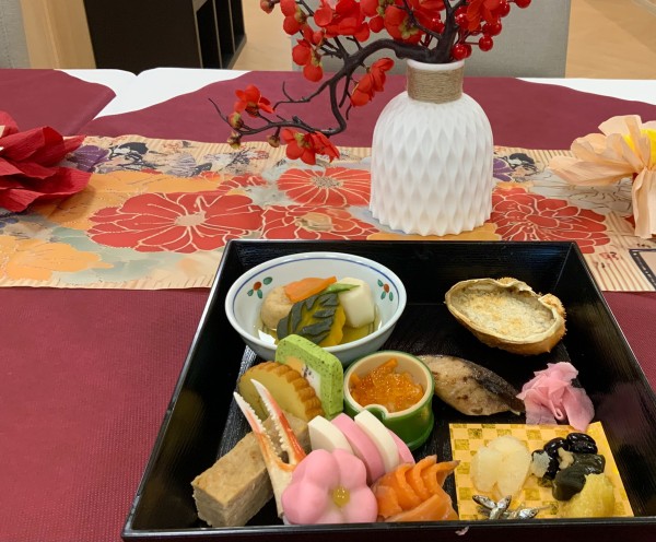お昼には、厨房スタッフ特製のおせち料理をご提供しました。