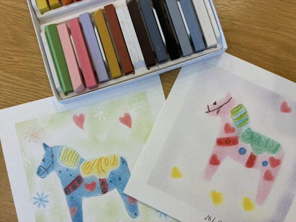 コットンで優しく色を重ねていくと、可愛らしい馬のシルエットが浮かび上がってきます。