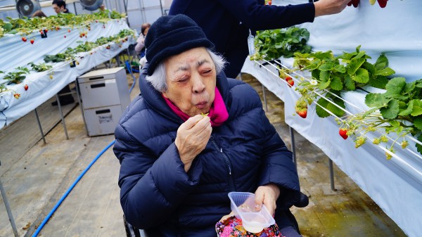 車内ではいちごを何個食べようかなどご入居者同士で賑わっていらっしゃいました。