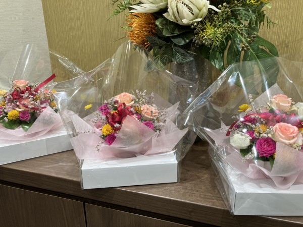3名の方には桃色のフラワーアレンジメントをプレゼント。