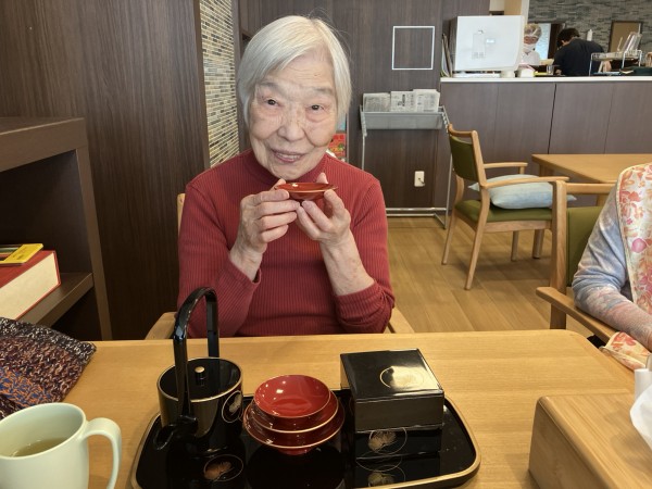 支配人より新年のご挨拶のあとは、お屠蘇を振舞いました。