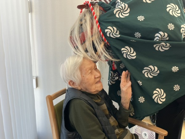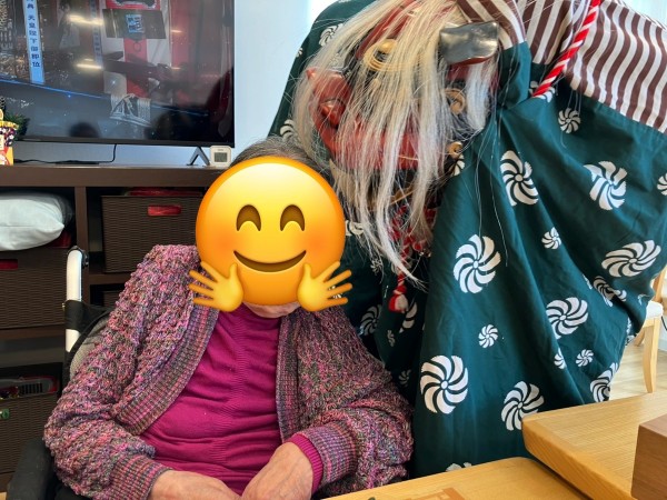 テーブルの入居者様、おひとりづつ盃をお渡しします。