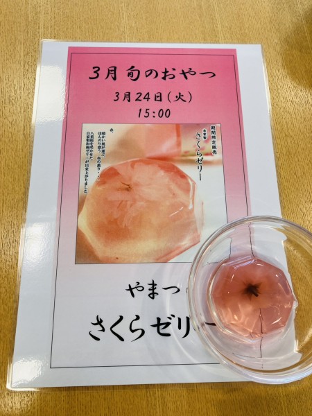 菓子処やまつの期間限定桜ゼリーをご用意いたしました。