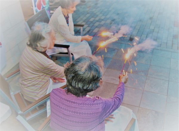 久しぶりの花火に触れ、お孫様との思い出を懐かしくお話されたり、ドキドキされながら手持ち花火を楽しまれたり皆様、表情がいっそう輝いていらっしゃいました。